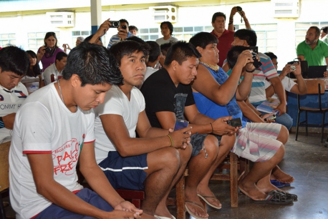 Acadêmicos de 32 etnias da Faculdade participaram da reunião, que contou ainda com as presenças do aluno Tapi Yawalapiti, da pró-reitora de Ensino de Graduação, Ana Di Renzo; do diretor Político-Pedagógico e Financeiro do campus de Barra do Bugres, Alexandre Porto; o vice-prefeito João Bosco; professores e servidores da Unemat; e imprensa local.